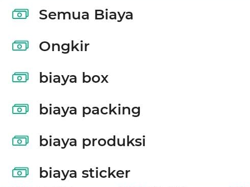 - Kategori Biaya Lainnya: Menampilkan biaya sesuai dengan yang telah Anda tambahkan pada sistem (contoh: biaya ongkir, biaya packing, atau biaya sticker).