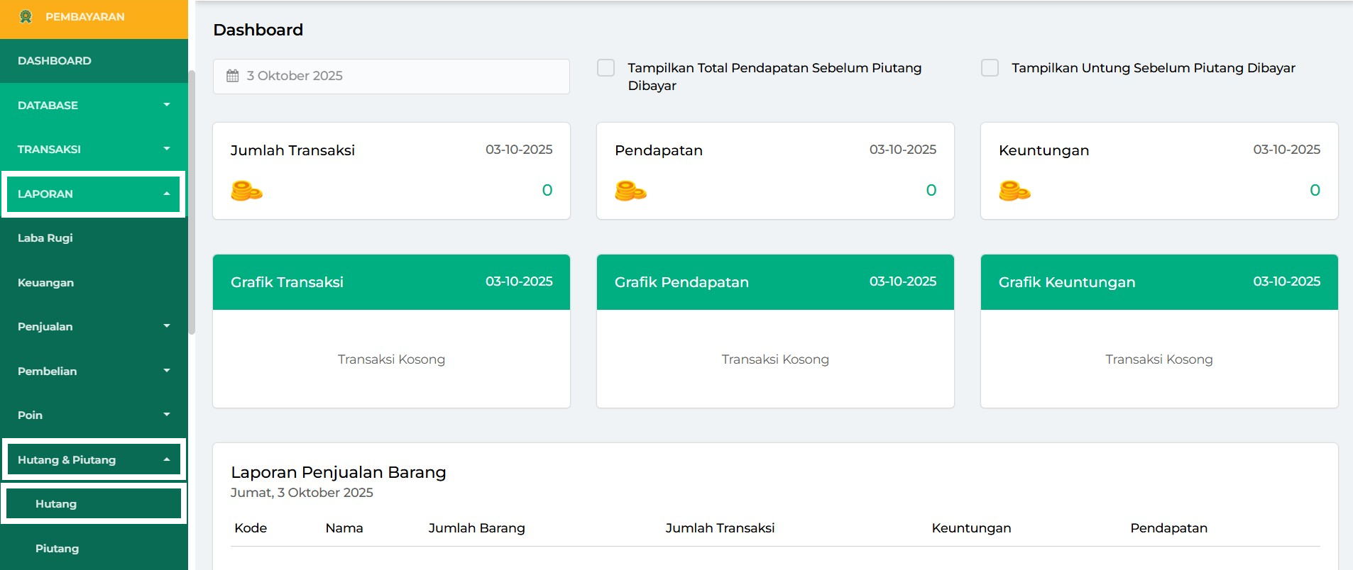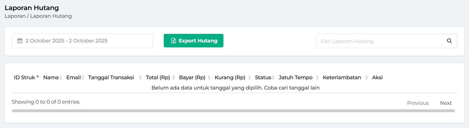 3. Anda akan diarahkan ke halaman Laporan Hutang.
