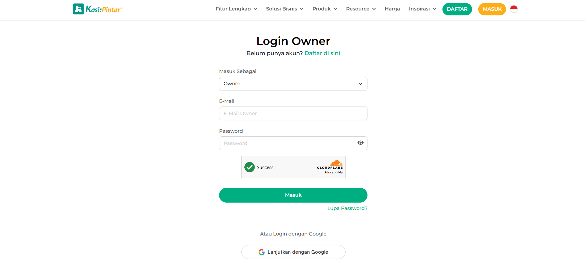 1. Login ke website/back office Kasir Pintar menggunakan akun yang sudah terdaftar.