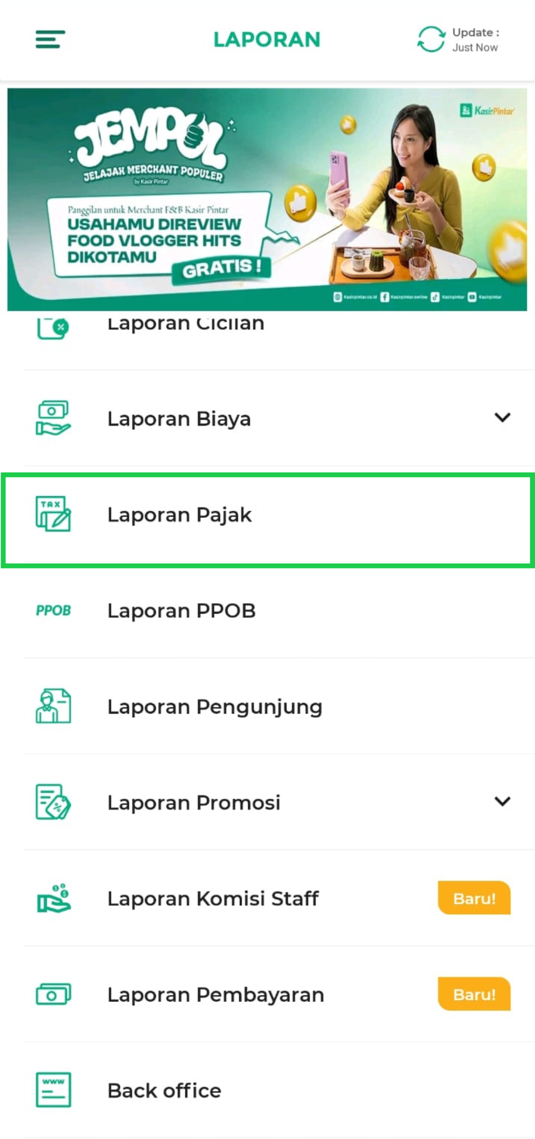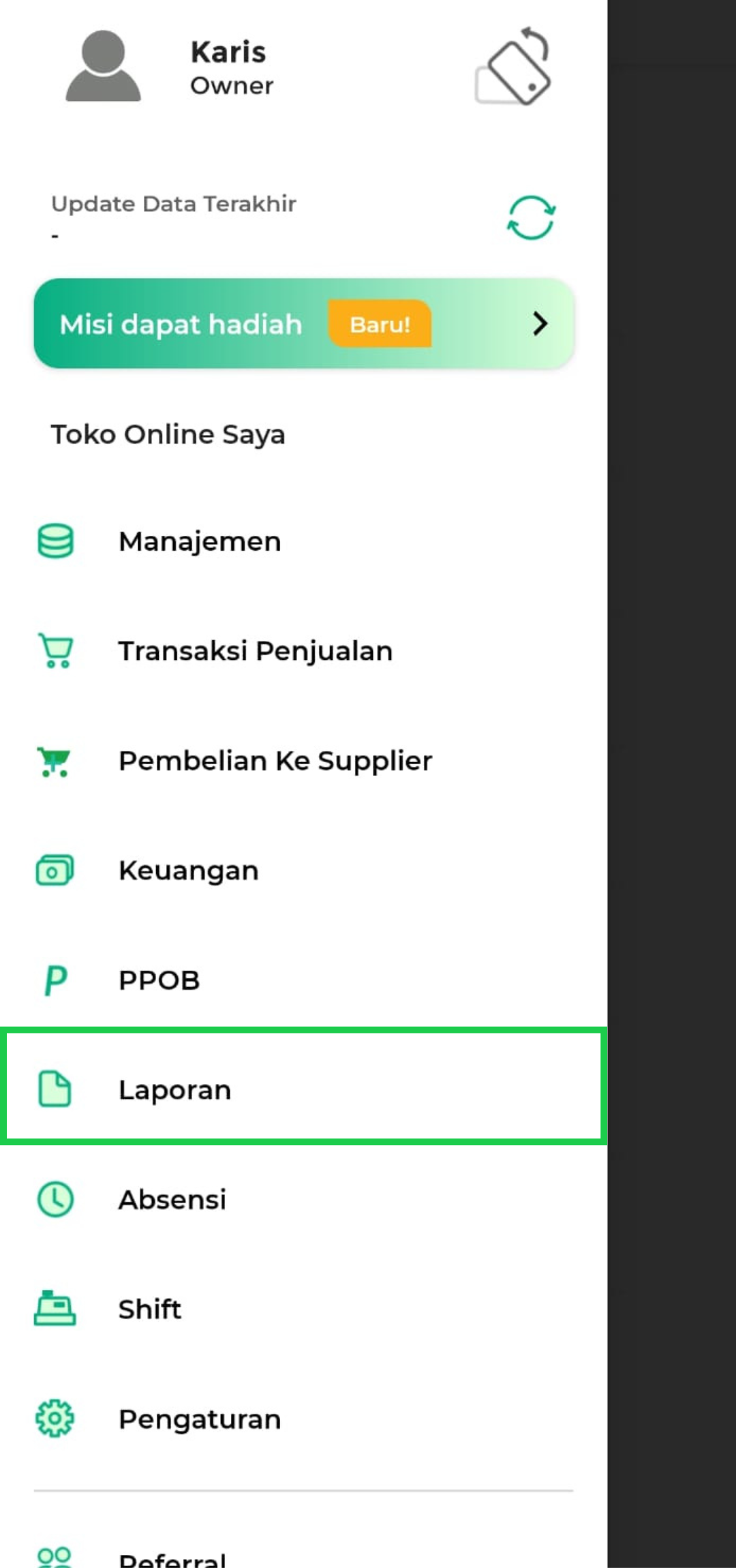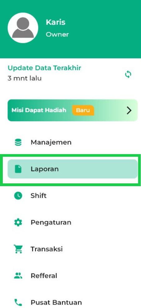 2. Pilih menu Laporan.