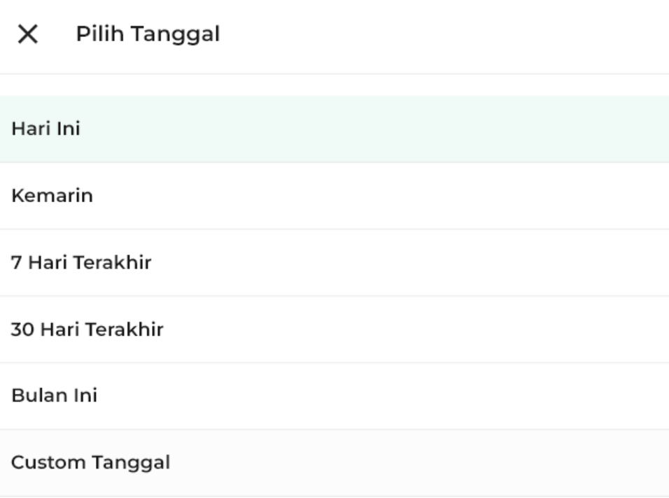 Jika Anda memilih Custom Tanggal, Anda dapat memilih jangka waktu periode berdasarkan keinginan Anda dengan klik salah satu pada pilihan kolom periode waktu laporan untuk melakukan penyesuaian.