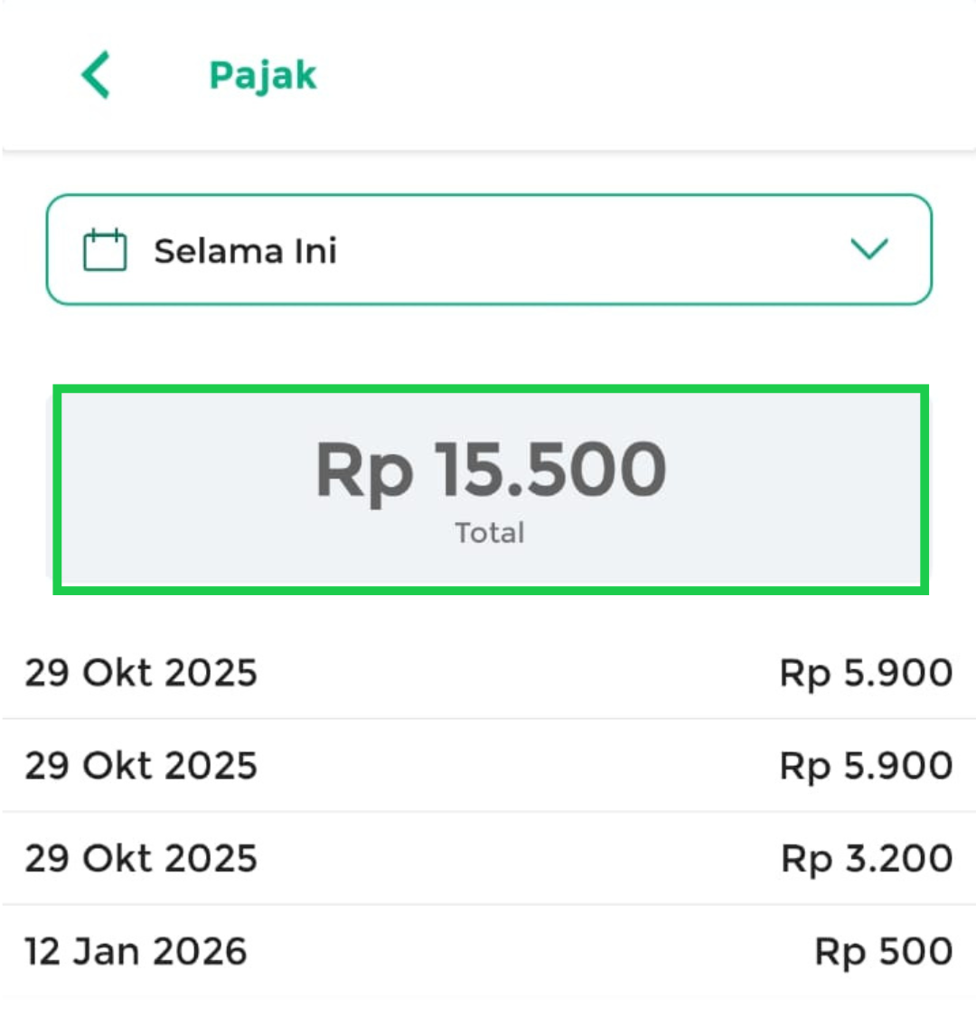 - Kemarin: menampilkan laporan pajak kemarin.