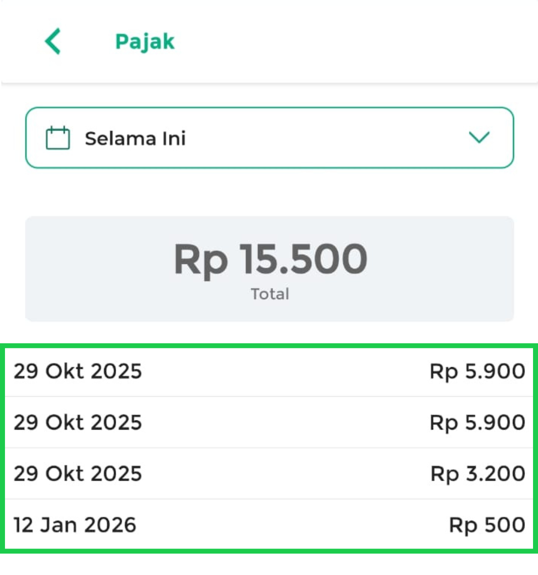 6. Terdapat tabel yang menampilkan rincian pajak yang dikenakan beserta totalnya, sesuai dengan periode waktu yang Anda pilih.