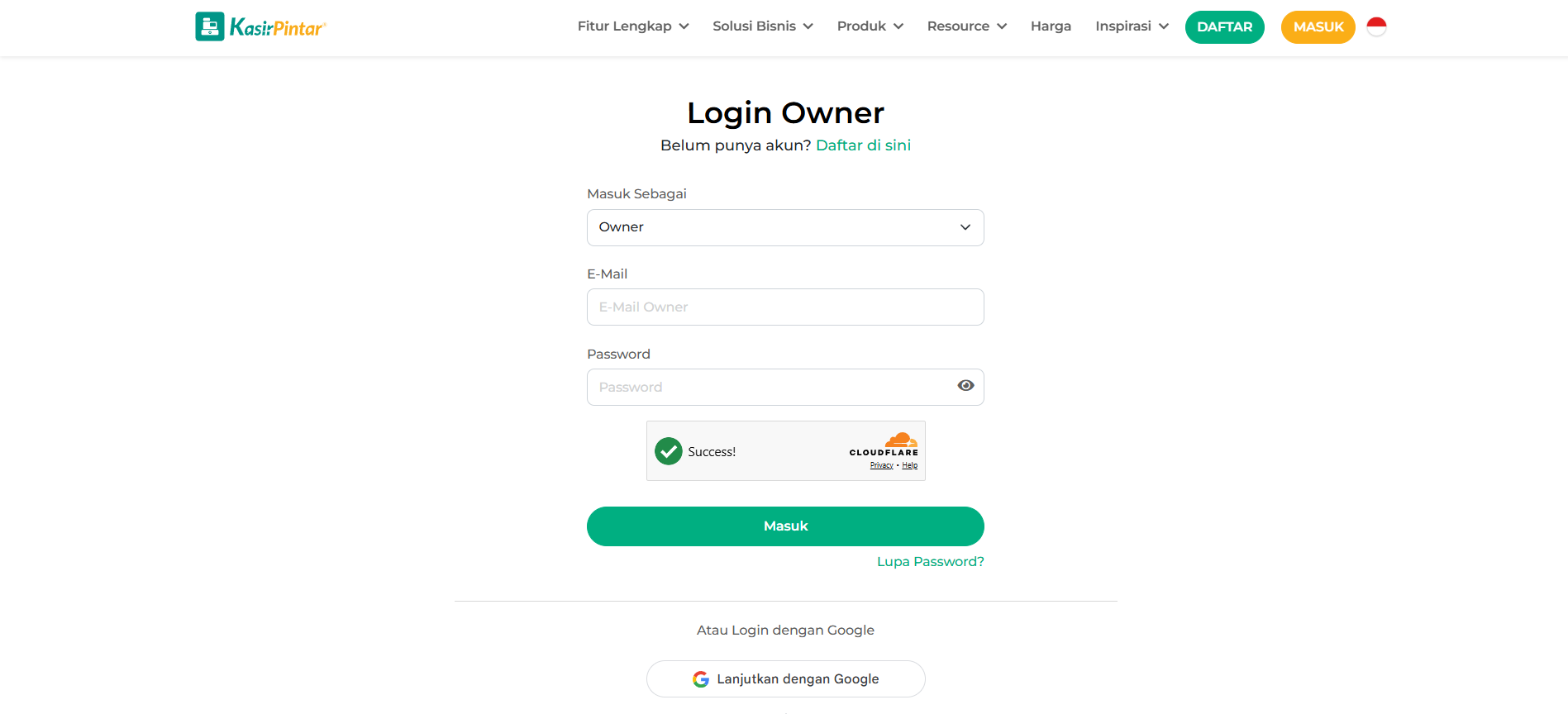 1. Login ke website/back office Kasir Pintar menggunakan akun yang sudah terdaftar.
