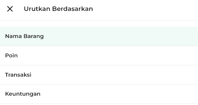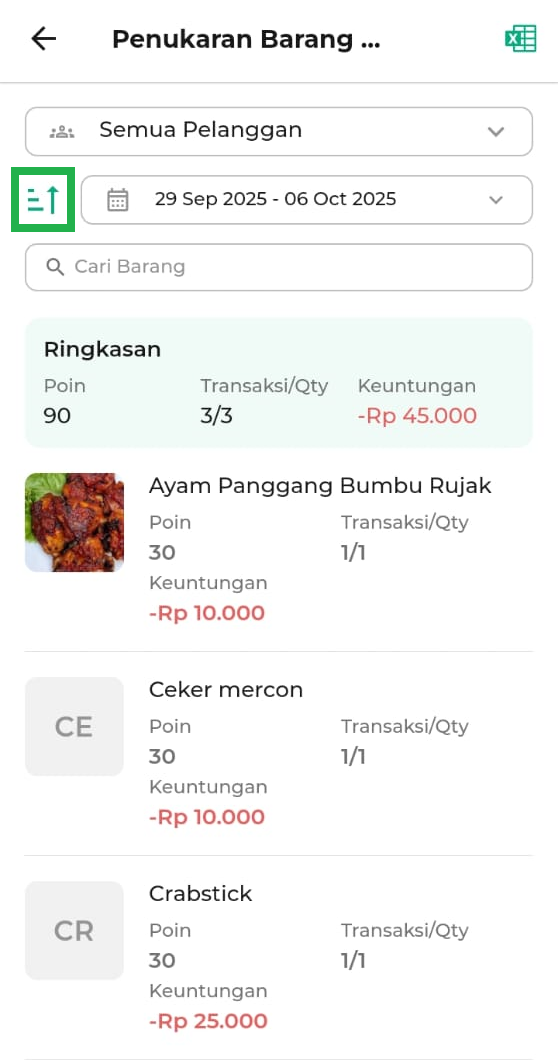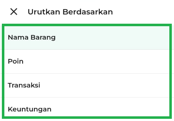 8. Jika Anda ingin melakukan sortir barang, Anda bisa klik ikon panah ke atas (ikon sortir).