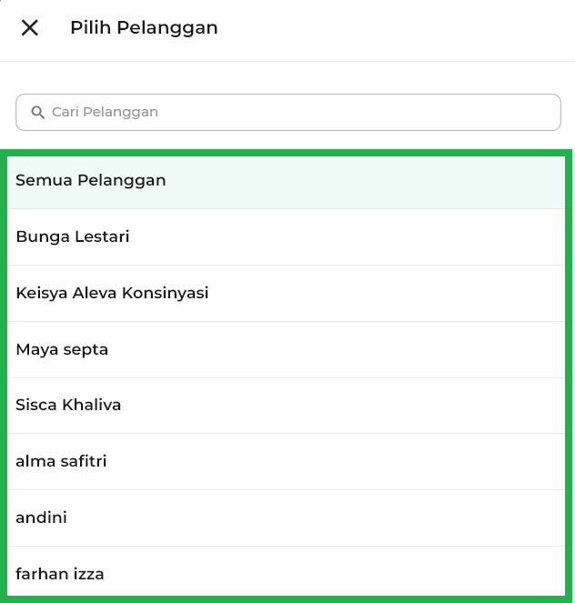 5. Fitur ini menampilkan data dari seluruh pelanggan secara default. Jika Anda hanya ingin melihat laporan dari pelanggan tertentu, cukup gunakan filter pelanggan yang tersedia.