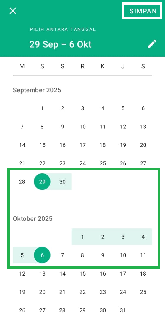 Pilih periode waktu sesuai dengan keinginan Anda. Jika sudah sesuai klik SIMPAN.