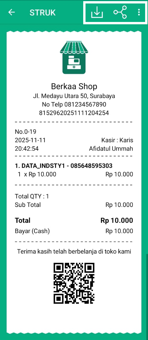 - Bagikan: Membagikan struk kepada pelanggan atau pihak terkait.