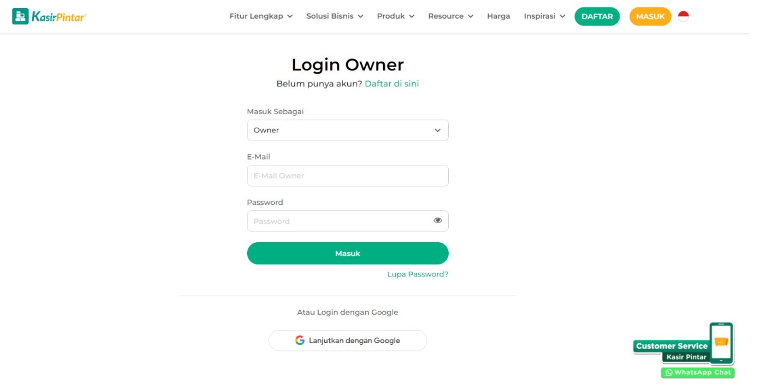 1. Login ke website/back office Kasir Pintar menggunakan akun yang sudah terdaftar.