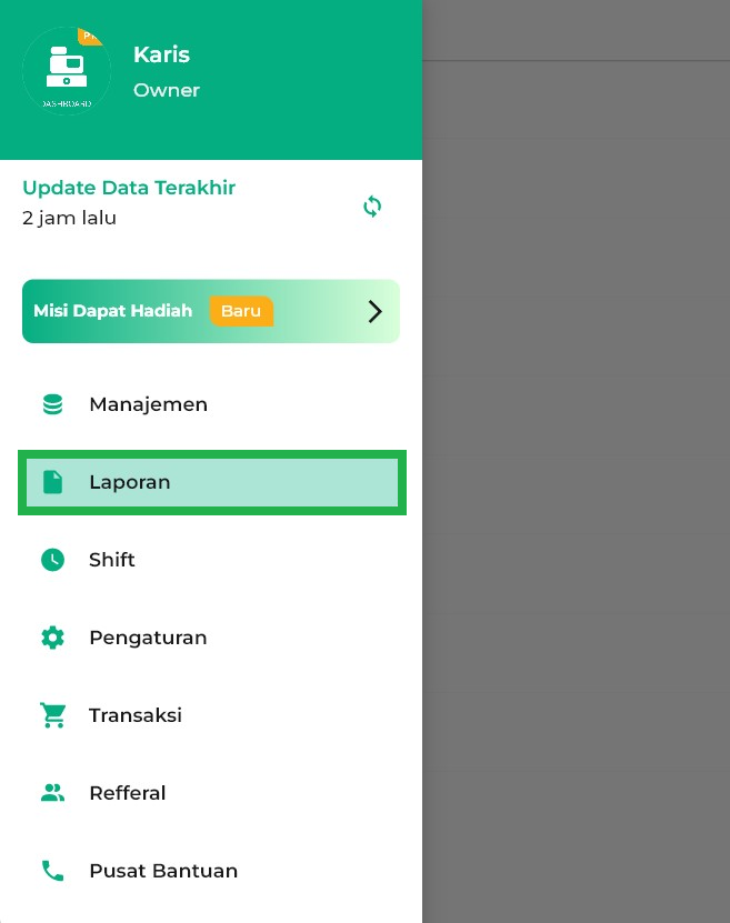 2. Pilih menu Laporan di sidebar.