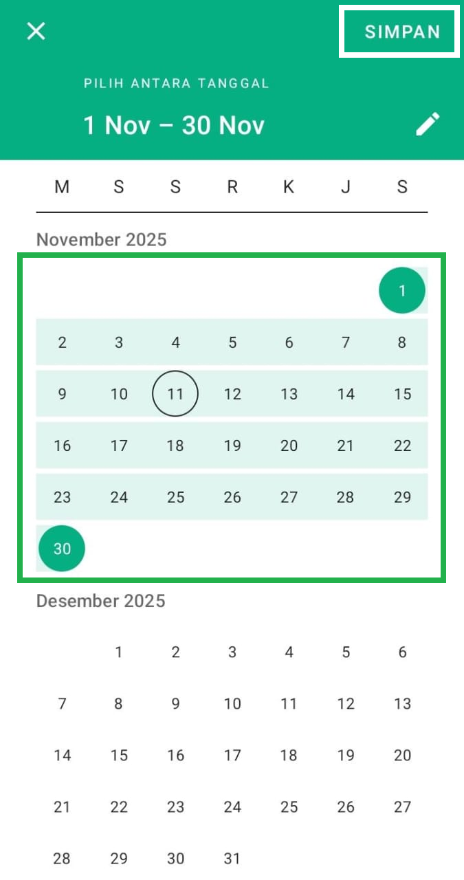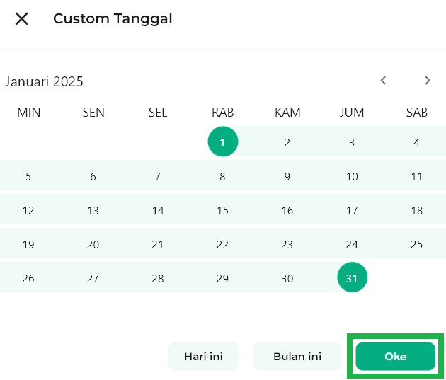 Anda dapat pilih sendiri jangka waktu laporan PPOB sesuai kebutuhan, setelah itu klik Simpan agar rentang waktu dapat diterapkan.
