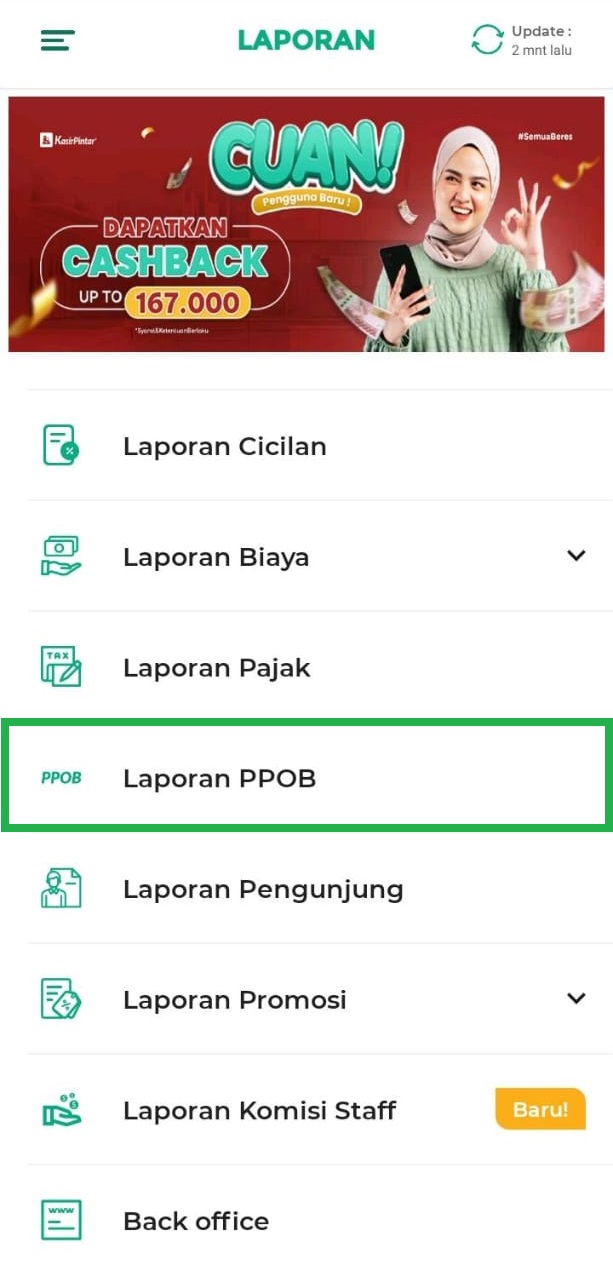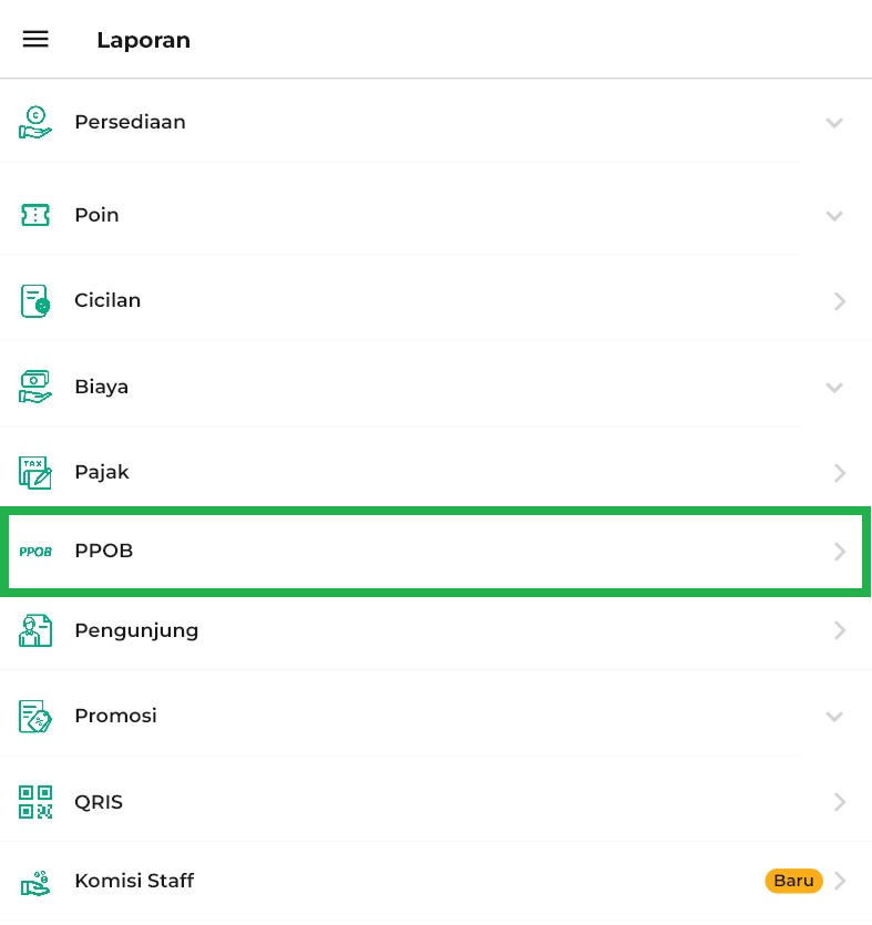 3. Klik opsi Laporan PPOB pada halaman laporan.