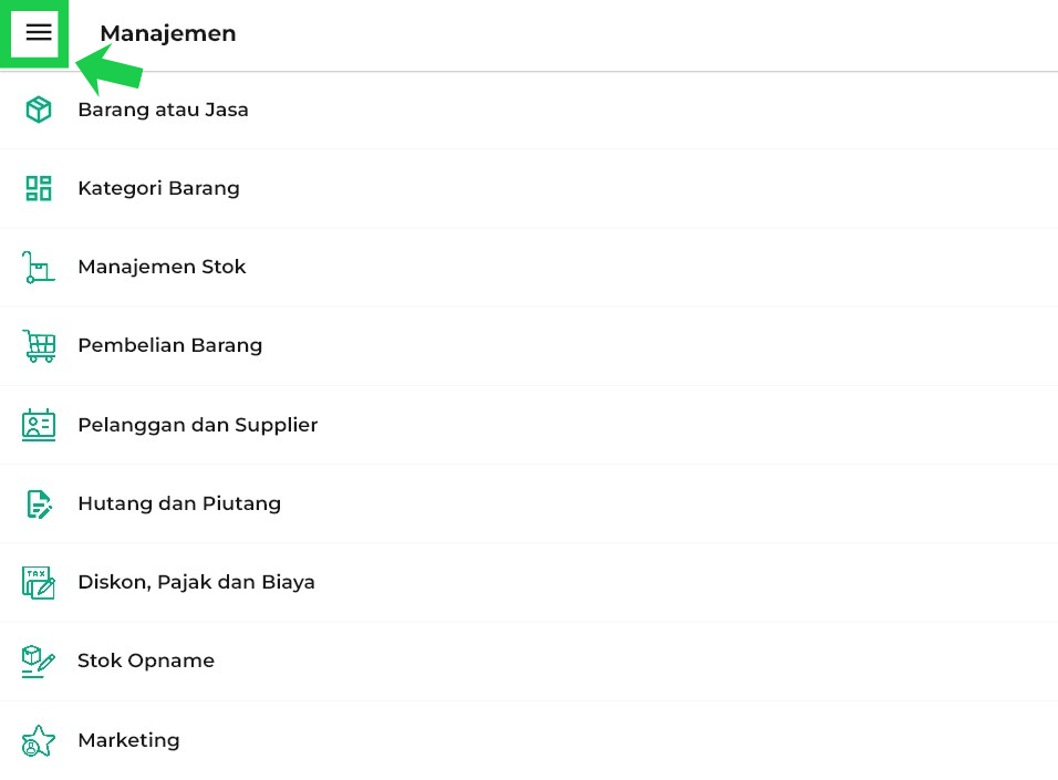 1. Buka aplikasi Kasir Pintar Pro atau Kasir Pintar Dashboard (iOS), lalu klik ikon garis tiga di pojok kiri atas untuk membuka menu sidebar.