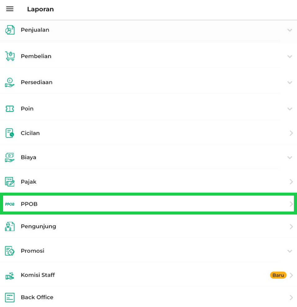 3. Klik opsi Laporan PPOB pada halaman laporan.