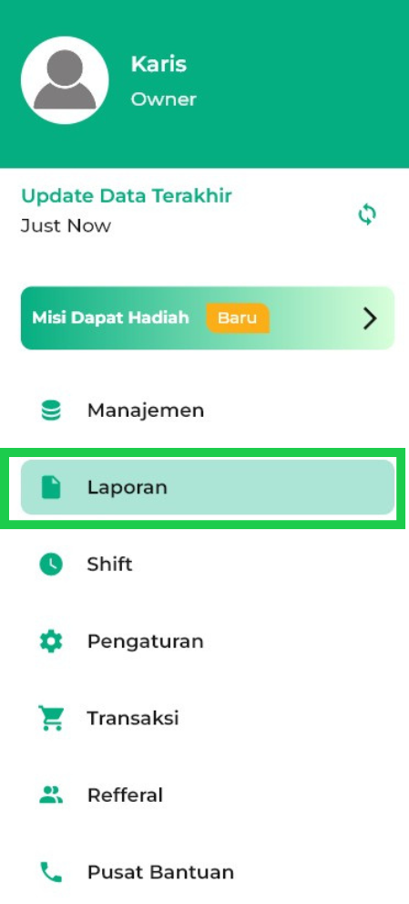 • Owner: menampilkan laporan PPOB yang dilakukan oleh owner.