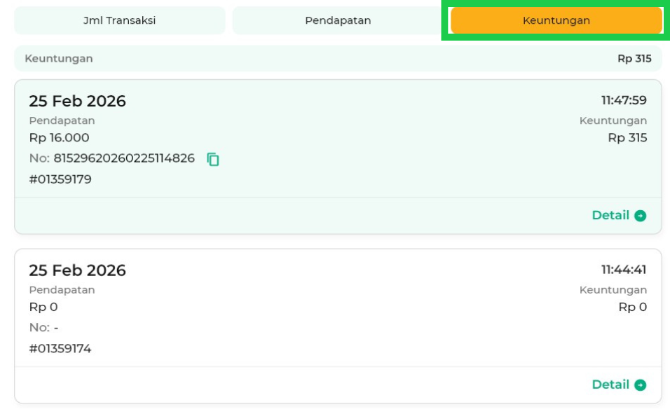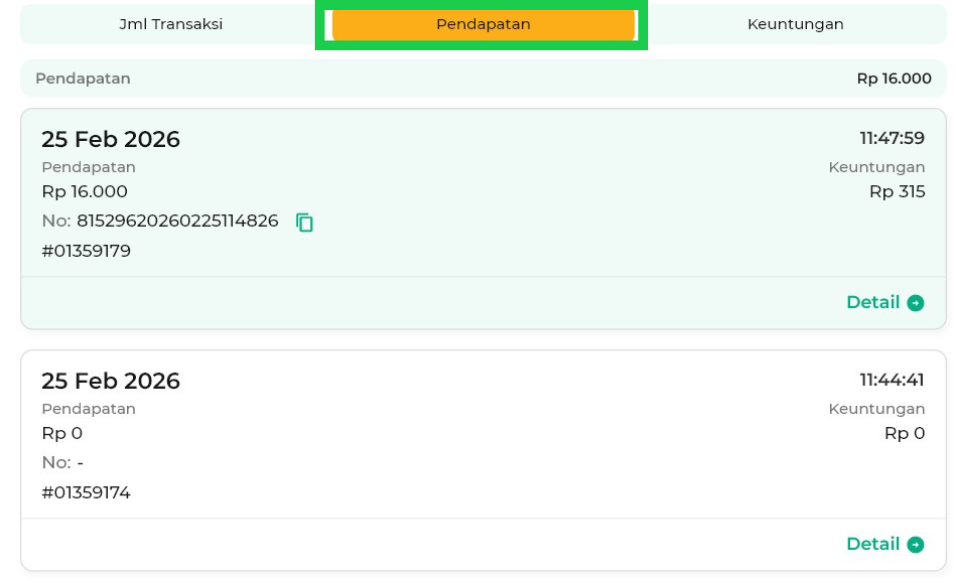 • PPOB: pilih jenis PPOB tertentu untuk menampilkan transaksi sesuai kategori yang dipilih.