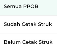 • Sudah Cetak Struk: menampilkan struk laporan PPOB yang sudah dicetak.
