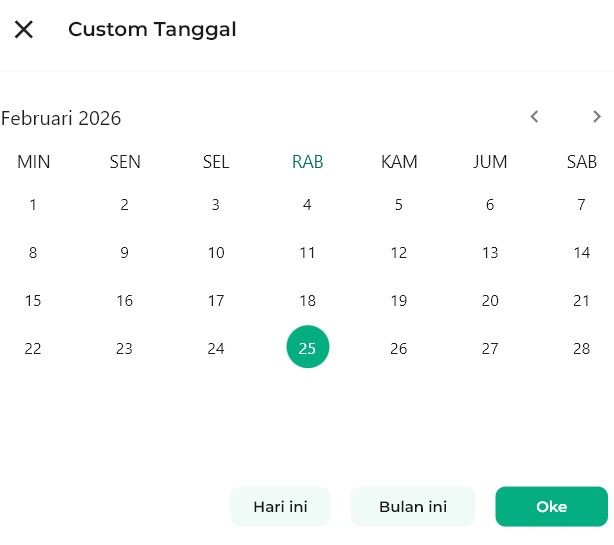 • Kustom: menampilkan laporan PPOB secara custom (pilih sesuai waktu yang diinginkan). Selanjutnya Anda dapat klik OKE.