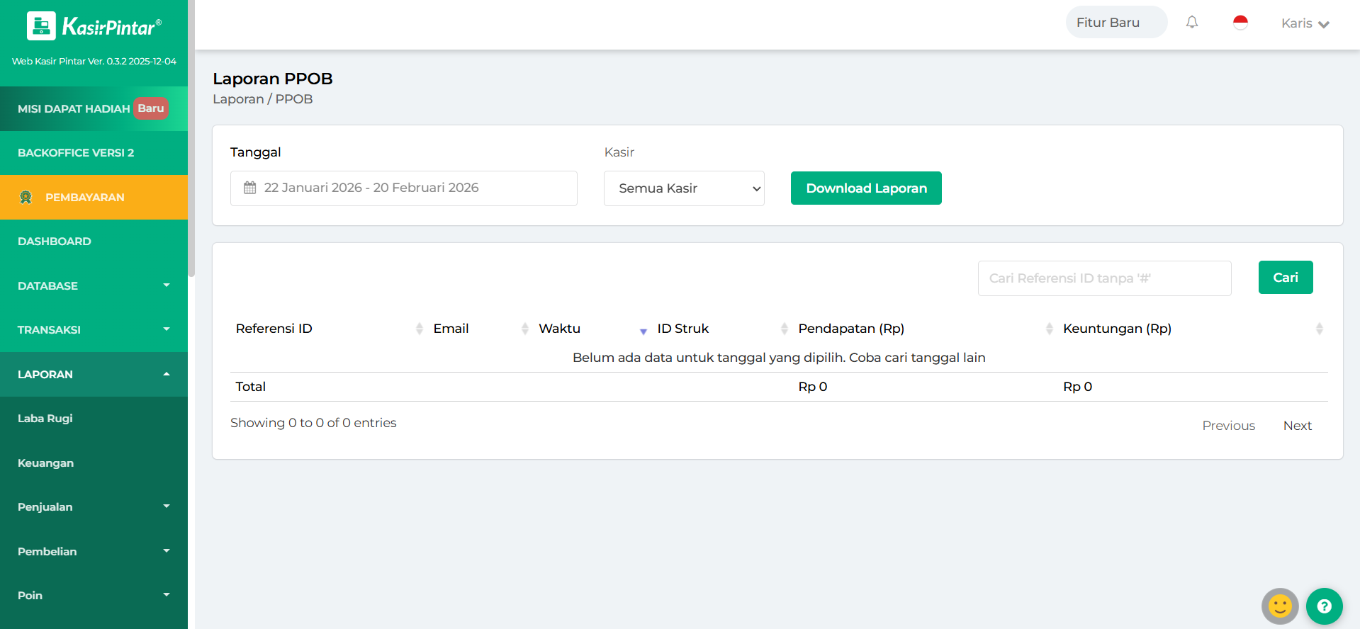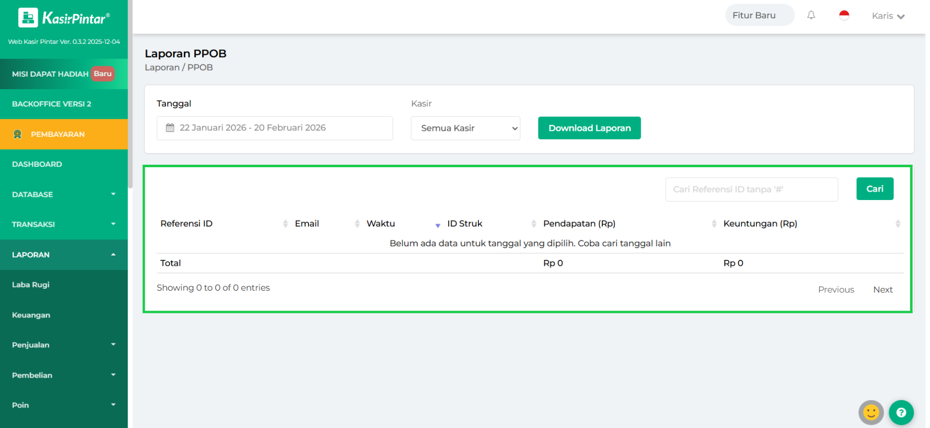 3. Anda akan diarahkan ke halaman Laporan PPOB.