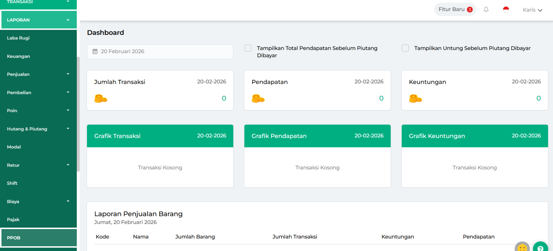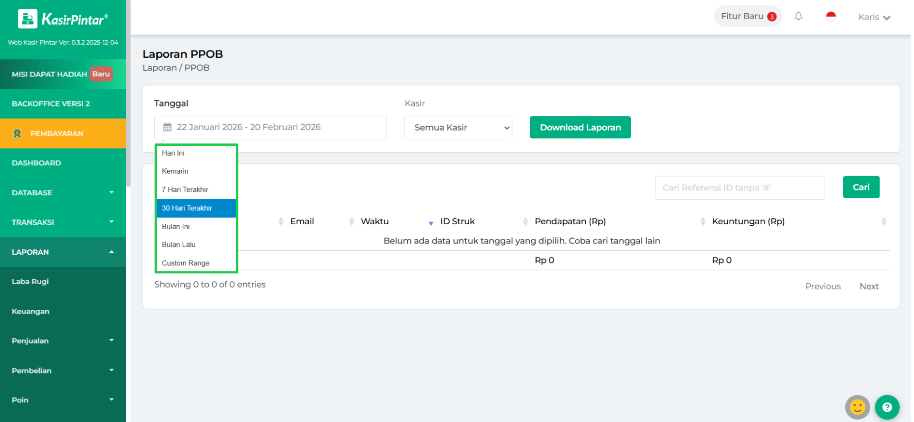 • Hari Ini: menampilkan laporan PPOB hari ini.