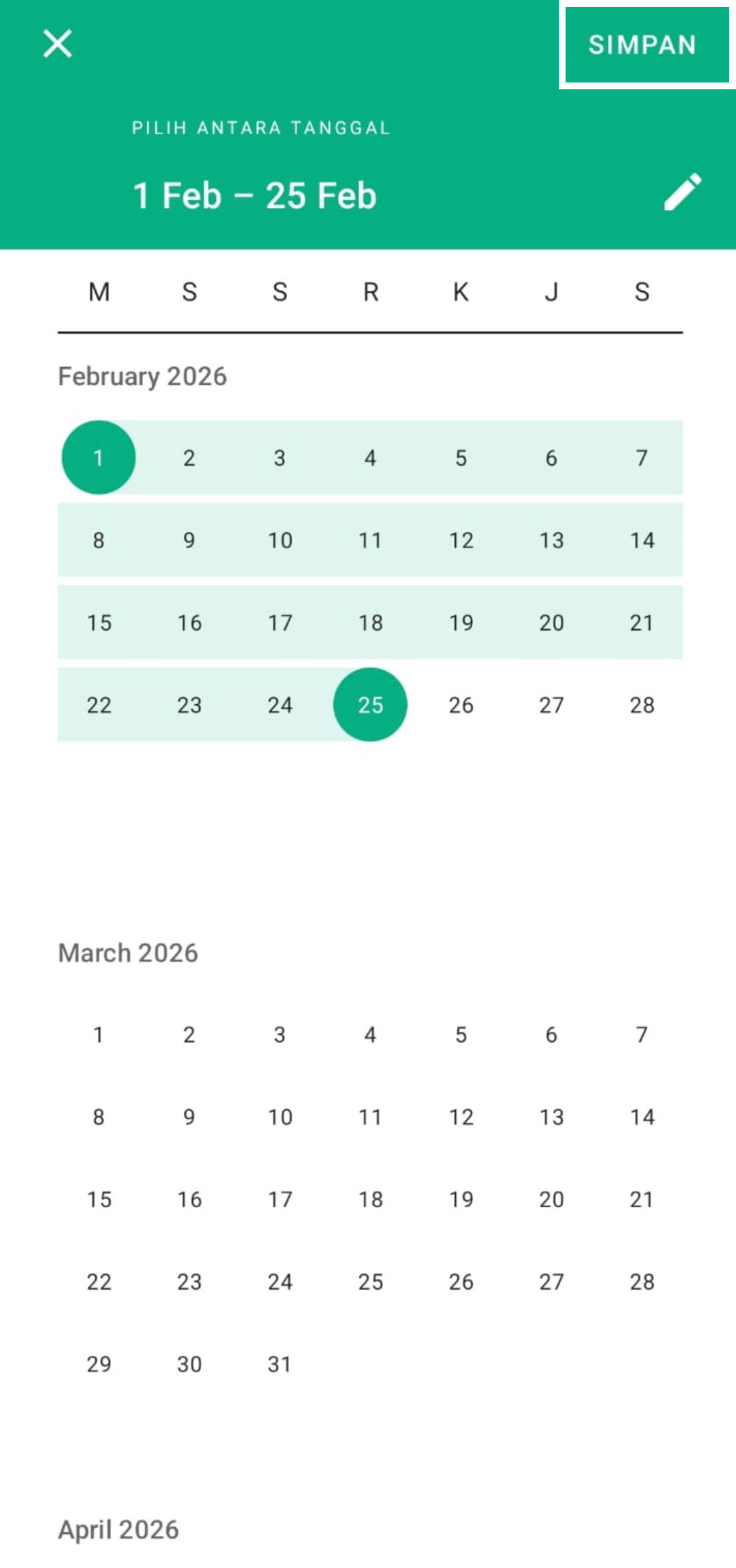 Anda dapat pilih sendiri jangka waktu laporan PPOB sesuai kebutuhan, setelah itu klik Simpan agar rentang waktu dapat diterapkan.
