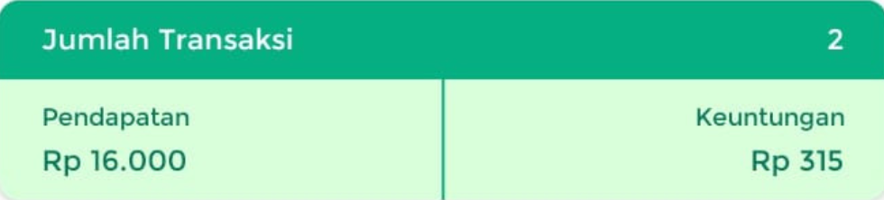 • Total Pendapatan: akumulasi nilai transaksi yang telah berhasil dilakukan.
