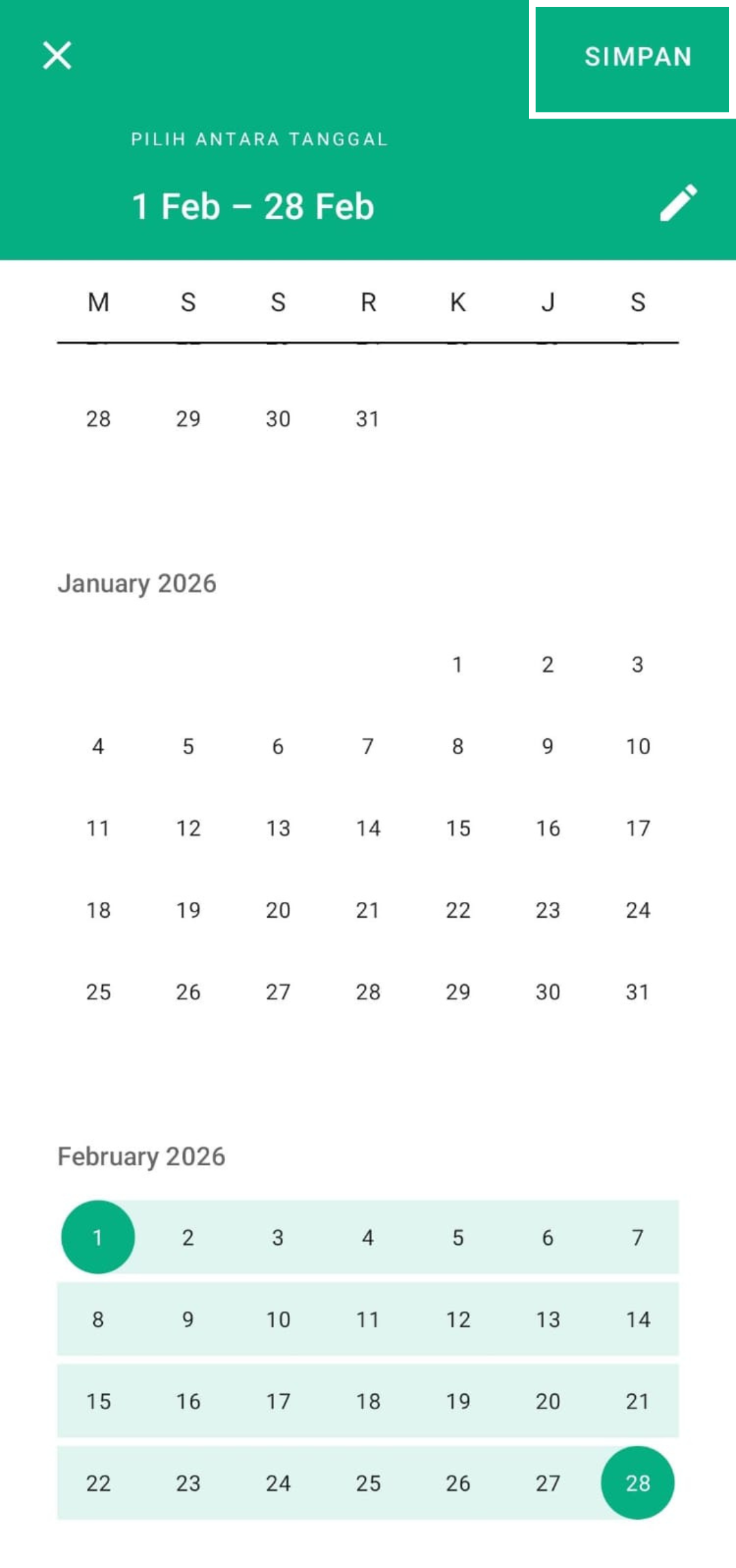 Pilih sendiri jangka waktu laporan promosi sesuai kebutuhan, setelah itu klik SIMPAN agar rentang waktu dapat diterapkan.