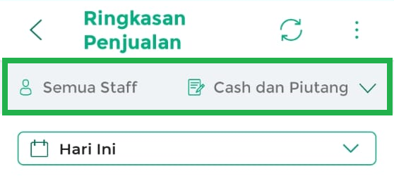 Pilih filter melihat Ringkasan Penjualan dari Semua Staf, Hanya Owner, atau Staf pilihan.