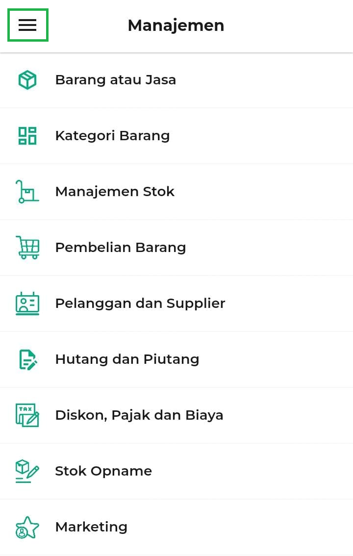 1. Buka aplikasi Kasir Pintar dan klik ikon garis tiga di pojok kiri atas untuk membuka menu sidebar.