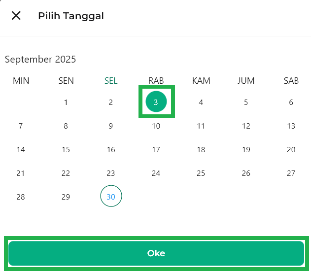 Tampilan jika Anda memilih Custom, Anda bisa memilih tanggal yang diinginkan lalu klik Oke.