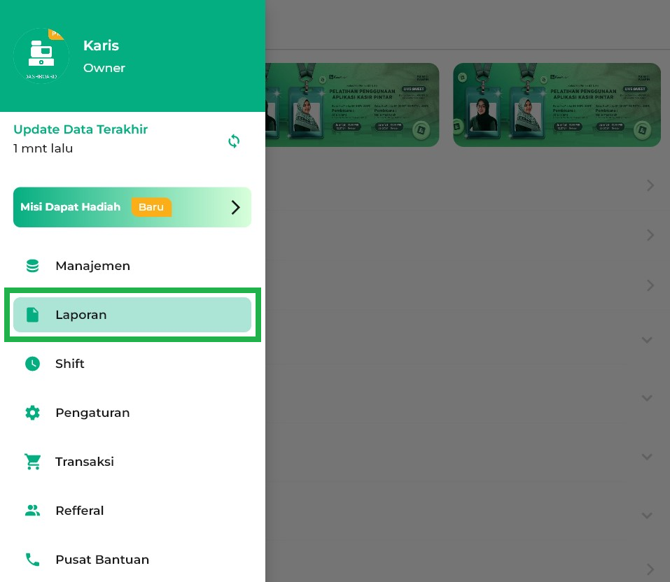 2. Pilih menu Laporan pada sidebar.