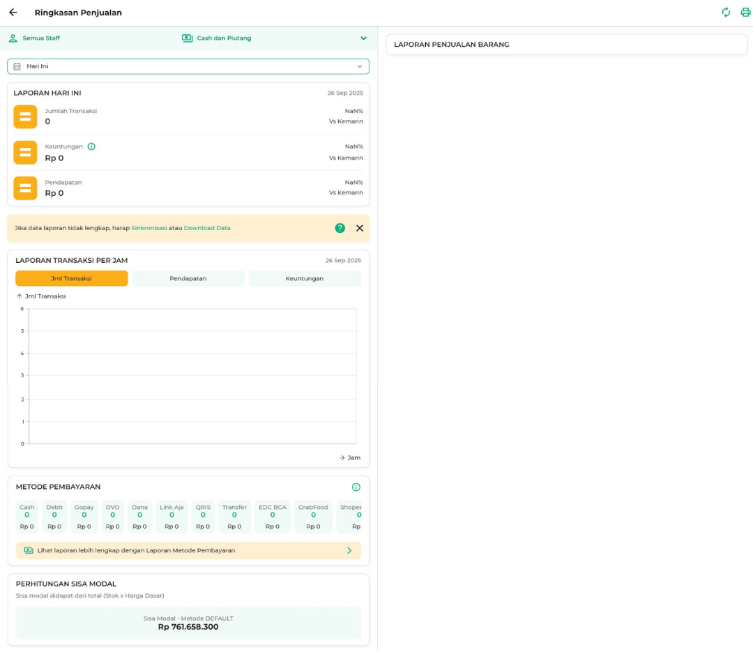 - Hari ini: menampilkan transaksi hari ini.